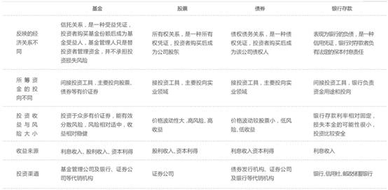(二)基金與股票、債券、儲(chǔ)蓄存款等其它金融工具的區(qū)別