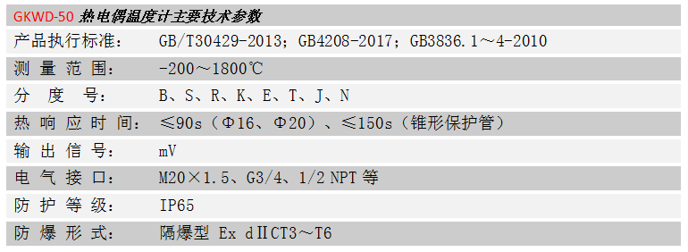 GKWD-50熱電偶溫度計是利用熱電效應(yīng)為原理測量多種生產(chǎn)過程中從-200~1800℃范圍內(nèi)的液體介質(zhì)、氣體介質(zhì)、蒸汽以及固體表面等的溫度,現(xiàn)已成為中高溫溫度遠傳儀表的理想選擇。
